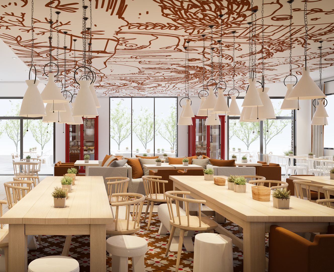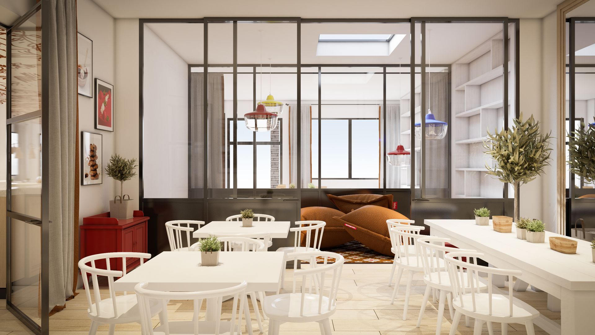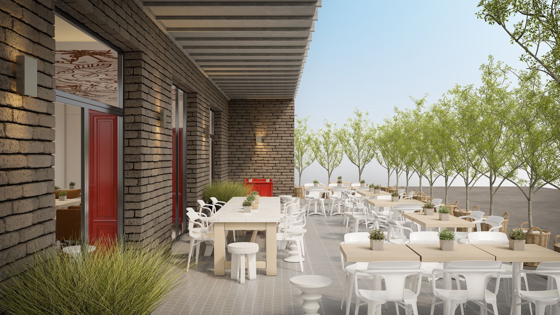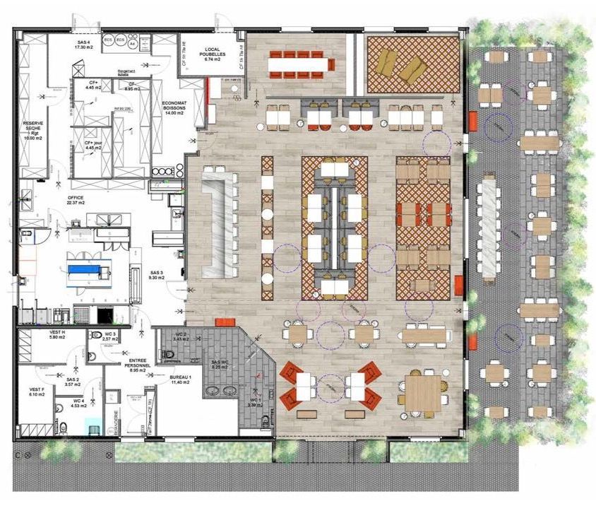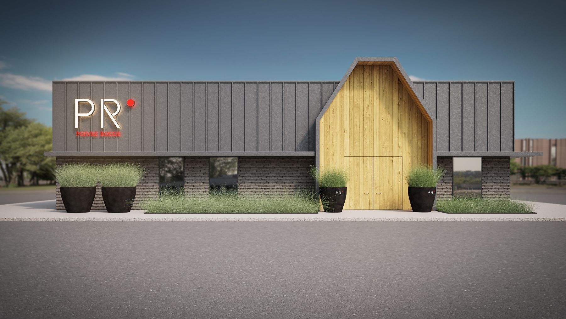 PROGRAMME : Façade et Entrée - Restaurant - Terrasse - Identité visuelle logo.